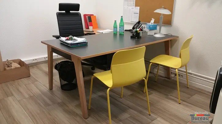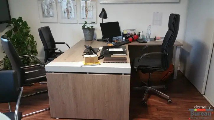 Bureau de Direction, commode à roulettes sécurisée, chaise de bureau et siège.